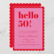 Make a vibrant statement with this eye-catching scalloped-edge birthday invitation! Featuring bold red “hello 50!” text on a pink background, this playful and modern card invites guests to celebrate a milestone birthday in style. Fully customizable with name, date, location, and RSVP info.