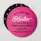 This classic "It's game time!" girl's 1st birthday circle photo invitation features a pink basketball with bold lettering. The reverse side features a black background with pink star patterns. Personalize it for your needs. You can find matching products at my store.