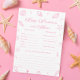 Convite Pink Beach Baby Shower Baby Predictions Game Card