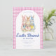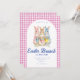 Convite Pink Blue Floral Bunny Watercolor Gingham Easter
