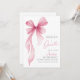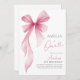 Pink Bow 1st Birthday Invitation - A pretty pink bow coquette themed first birthday invitation with modern watercolour pink bow.