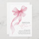 Pink Bow 1st Birthday Invitation - A pretty pink bow coquette themed first birthday invitation with modern watercolour pink bow.
