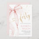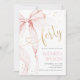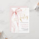 Pink Bow 40th birthday invitation. Modern feminine design in blush pink and gold. Features trendy watercolor coquette bow, and heart script font "fifty". Perfect for an elegant style women's bday celebration. Personalize with your own details. Printed Zazzle invitations or instant download digital printable template.