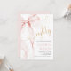 Pink Bow 80th birthday invitation. Modern feminine design in blush pink and gold. Features trendy watercolor coquette bow, and heart script font "eighty". Perfect for an elegant style women's bday celebration. Personalize with your own details. Printed Zazzle invitations or instant download digital printable template.