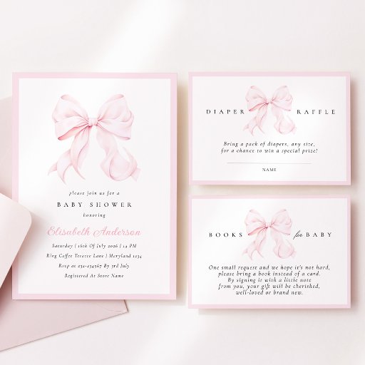 Convite Pink Bow Baby Shower Invitation