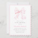 Sweet baby shower invitation that features an elegant pink bow. Choose the scallopped edges for a whimsical finish.