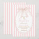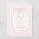 Convite Pink Bow Blush Cross Stripes Baptism Invitation