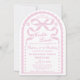 The arched design adds a sophisticated, high-end feel, while the soft blush pink tones and graceful ribbon illustration create a romantic and polished look. Elegant script typography paired with clean, classic fonts ensures your event details are both stylish and easy to read. This design is ideal for a Mexican fiesta baptism, first birthday celebration, garden party, or elegant family gathering.