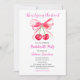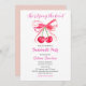 Pink Bow Coquette, cherries, watercolor, Bachelorette party invitation. Personalize it with your details.