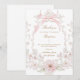 Convite pink bow flowers frame Thank you card