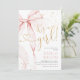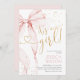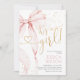 Pink Bow Elegant girl baby shower invitation. Modern minimalist design in blush pink and gold. Features trendy watercolor coquette bow, and heart script font it's a girl! Perfect for an elegant style girl shower celebration. Personalize with your own details. Printed Zazzle invitations or instant download digital printable template.