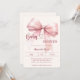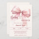 A soft beige, cream background, decorated with a large pink bow. For celebrating a baby girl. Personalize and add a name and party details.
