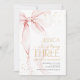 Pink bow girl's 3rd birthday invitation. Modern feminine design in blush pink and gold. Features trendy watercolor coquette bow, calligraphy heart script font and modern typography THREE. Perfect for an elegant style girl's third bday celebration. Personalize with your own details. Printed Zazzle invitations or instant download digital printable template.