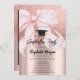 Convite Pink Bow Grad Cap Rose Gold Glitter Graduation
