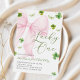 Pink Bow Lucky One Shamrock Clover 1st Birthday Invitation
