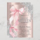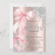 Convite Pink Bow Silver Glitter Drips Rose Gold Sweet 16