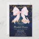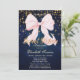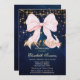 Convite Pink Bow Sparkle Navy Blue
