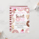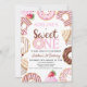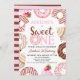 Pink Brown Sweet One Rosquinha Birthday Invitation Girl's sweets ou rosquinha temed first aniversation convidado apresentando várias rosquinhas e alguns cupcakes principalmente em rosa e marrom. Este doce convite de um aniversário é ideal para uma rosquinha ou doce a primeira festa de aniversário para uma menina.