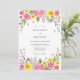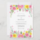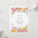 Lush pink roses and cheerful yellow daffodils bloom in a vibrant watercolor palette of bright pink and sunny yellow. Delicate green foliage and falling petals accent the botanical design, creating a bright and airy aesthetic. This joyful style is perfect for a romantic seasonal spring ceremony.