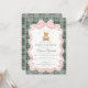 Convite Pink Coquette Bow Bear Tartan Plaid Baby Shower