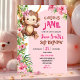 Convite Pink Curious Monkey Safari Theme Birthday
