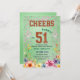A modern design featuring a dark gold glitter number 51 with pink and emerald glitter and colorful flowers on the bottom. Customize the details for a chic Birthday Celebration.