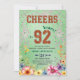 Convite Pink Emerald Glitter Floral 92nd Birthday Party