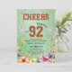 A modern design featuring a dark gold glitter number 92 with pink and emerald glitter and colorful flowers on the bottom. Customize the details for a chic Birthday Celebration.