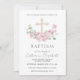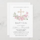Convite Pink Floral Cross Eucalyptus Leaves Baptism