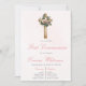 Convite Pink floral cross first communion