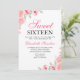 Convite Pink Floral Illustration Sweet Sixteen