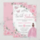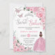 Convite Pink Floral Light Brown Princess Sweet 16 Birthday