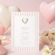 Pink Watercolor Floral Love Heart Valentine Bridal Shower Invitation with pink stripes.
