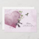 A pink Valentine's Day card with a floral heart and hummingbird.