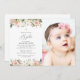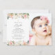 Invite friends and family in style and set the tone for your special day with this elegant baptism invitation. Design features pink and white watercolor flowers and greenery on white background.