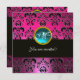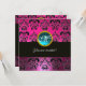 Convite PINK FUCHSIA BLACK DAMASK MONOGRAMA, aquamarina az