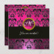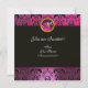 Convite PINK FUCHSIA PRETO DAMASCO MONOGRAMA, ametista