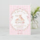 Convite Pink Gingham Bunny Baby Shower Blush Dusty Pink