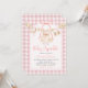 Celebrate a sweet and meaningful gathering with this elegant Baby Sprinkle Invitation, featuring a delicate daisy clothesline with baby dress, bonnet, and shoes, framed by a soft pink gingham background and charming ribbon details.