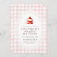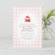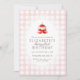 Convite Pink Gingham Strawberry Berry 1st Photo Birthday
