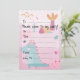 Convite Pink Girl Dino Birthday Party Fill--In Scalloped