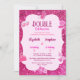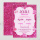 A bold and sparkly pink glitter double birthday party invitation designed for two girls celebrating together. Featuring fashionable accessories, bright glitter textures, and playful party icons, this eye-catching design is perfect for shared celebrations, siblings, twins, or friends. Easily customize names, ages, date, time, and event details to create a stylish and fun joint birthday invitation.