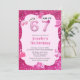 This stylish girls birthday party invite is perfect for a glam, pink, glitter-themed celebration and can be fully personalized with the child’s name, party date, time, and location.