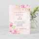 A soft pink background decorated with pink flowers, green and faux gold foliage. Personalize and add your names and the details.