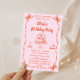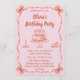 Convite Pink Hand-Drawn Cake & Ribbon Border Birthday