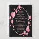 Pink Hearts Oval Geometric Elegant Black Wedding Invitation. Unique, beautiful, modern design. Easy to be personalized. Font style, size and colors can be changed. Matching items available.