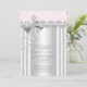 A renda cor-de-rosa suga com o primeiro convite de comunhão, cor-de-rosa e cinza, de uma garota cruz. Este bonito convite para a primeira comunhão do local cor-de-rosa é facilmente personalizado para o seu evento, adicionando detalhes do seu evento, estilo da fonte, tamanho e cor da fonte e texto.