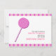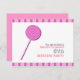O Lollypop (ou Lolly pop ou Lollipop) é um pedaço de doce endurecido acoplado à extremidade de um pequeno bastão. O design atual é um pirulito de cor rosa forte e forma redonda. As crianças gostam muito deste tipo de doces. Este cartão de convite de aniversário Lolly pop / Lollipop cor-de-rosa é perfeito para festas de aniversário para crianças. © Manhã 6