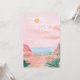 This destination wedding invitation features painted artwork of a Mexican desert beach scene. All the important wedding details can be personalized. Colors include green, pink, white and coral.