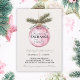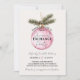 Ornament exchange Christmas party invitation with a beautiful pink bauble and a soft cream background. Personalize it with the host name, date, location, rsvp, and a message to your guests.